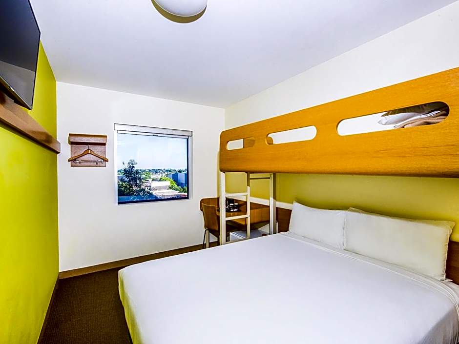 This triple room has air conditioning. It features a queen bed on the bottom and a single overhead bed. This room can accommodate a maximum of 3 people.